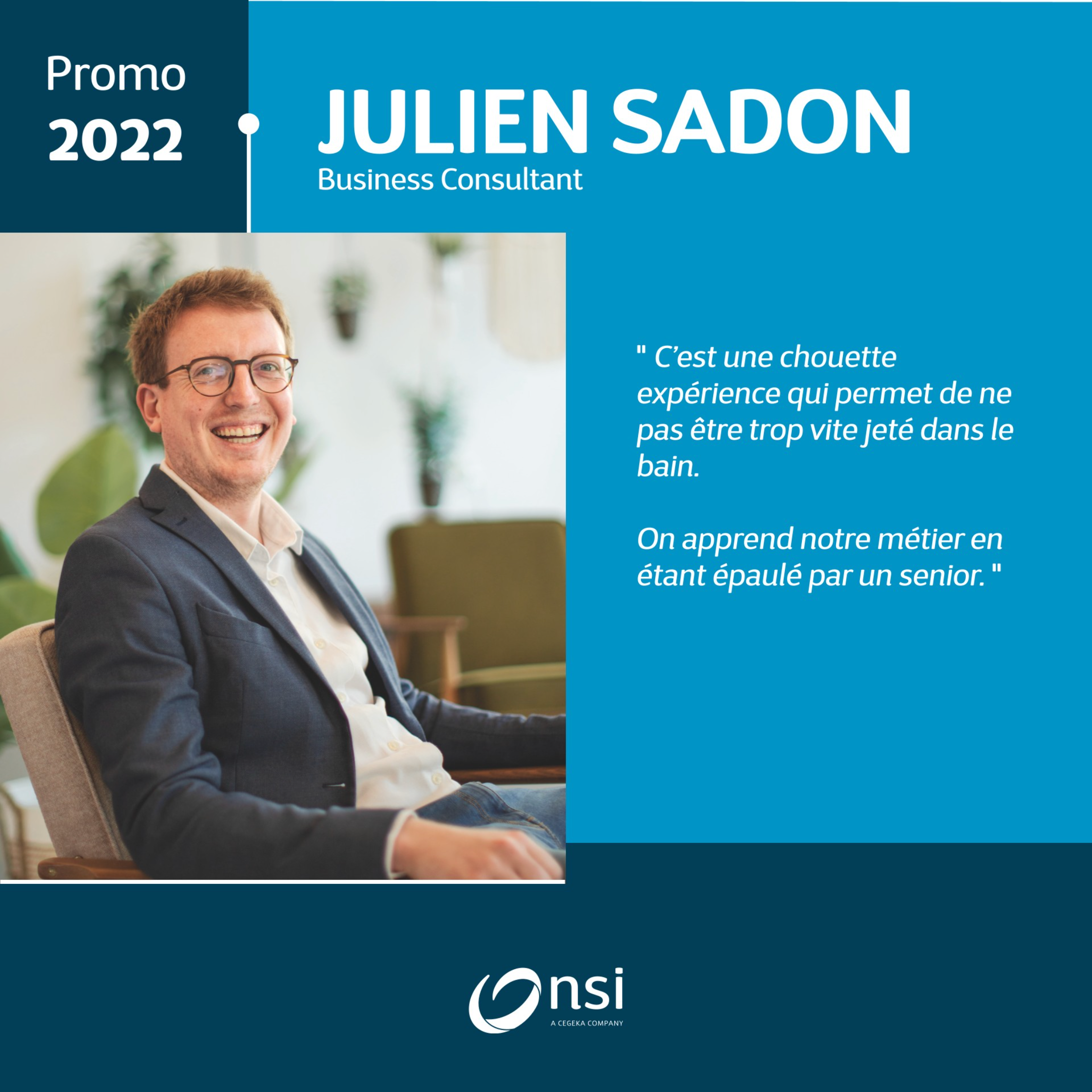 Comprendre ce que c'est que la fonction de Business Consultant n'est pas facile quand on sort de l'école. Être formé et encadré nous aide, non seulement à apprendre ce métier, mais aussi à l'apprécier.